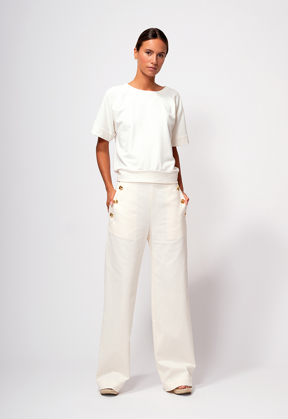 Flowy contemporary take on the classic shirt, this cotton seersucker blouse features a collar and button-through closure. The shirt has long sleeves with cuffs, which you can roll up. The model is 1.78 and wears a size 36.