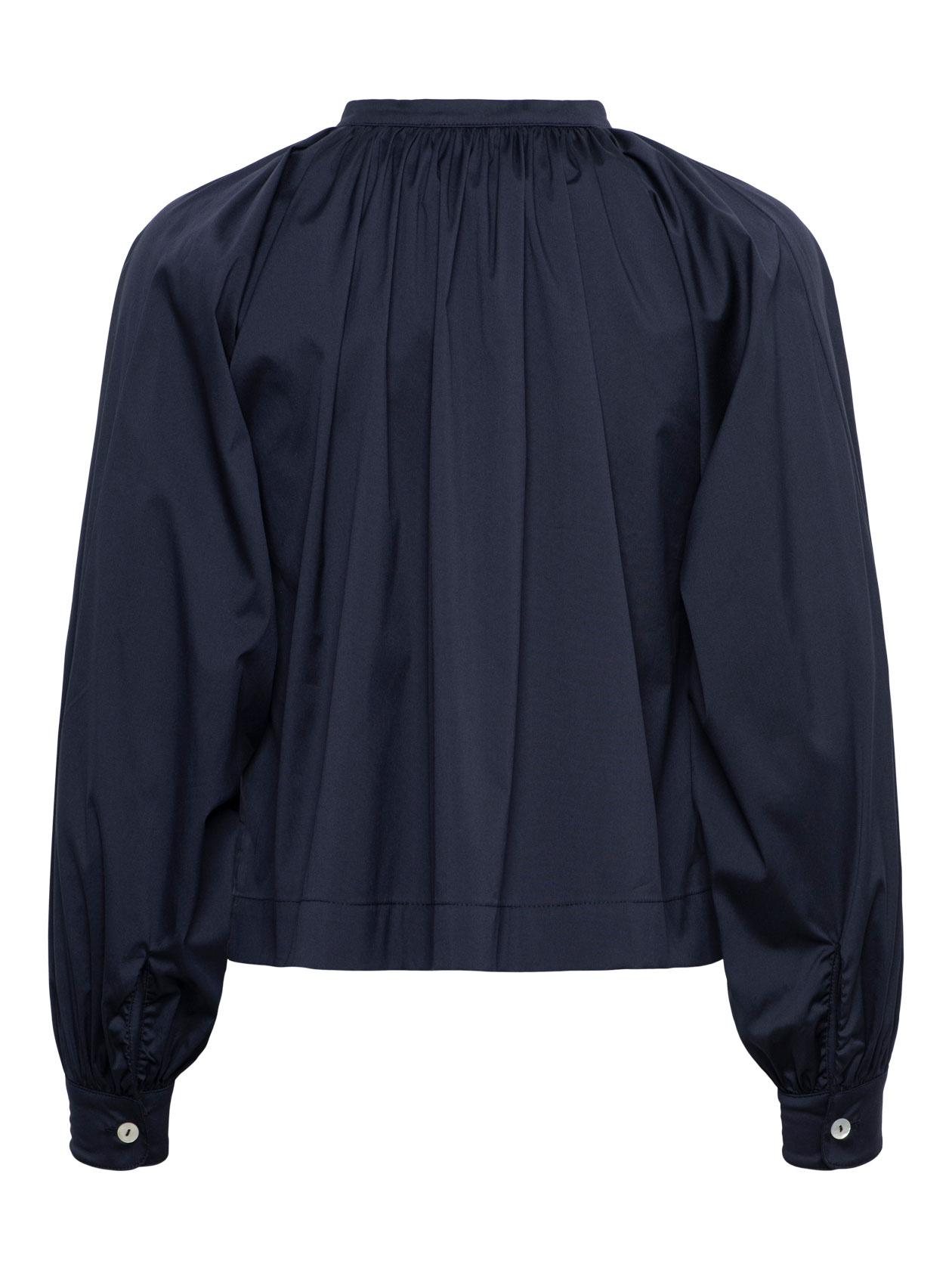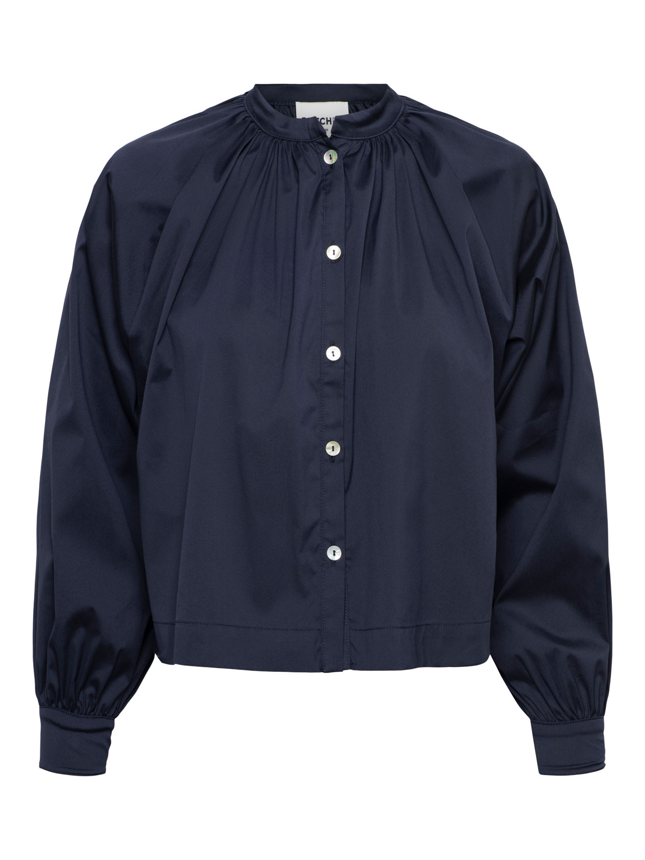 Light pink striped shirt with collar and button closure. The shirt has long sleeves with cuffs, which you can roll up. The model is 1.78 and wears a size 36.