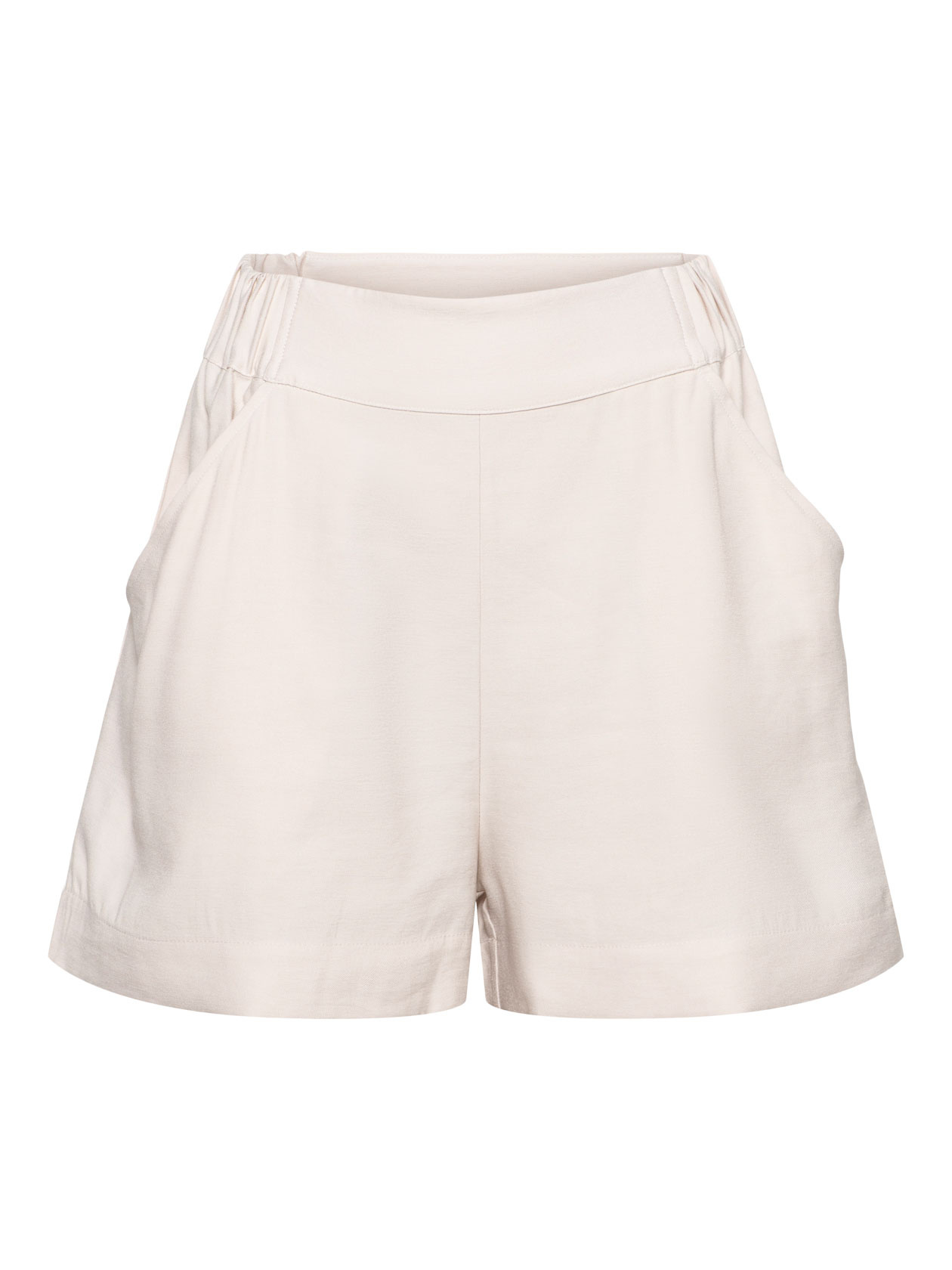 Comfortabele shorts, korte broek, deels elastieken band, steekzakken, relaxte pasvorm. Paspelzak op de achterzijde. Model is 1.78 en draagt een maat 36
