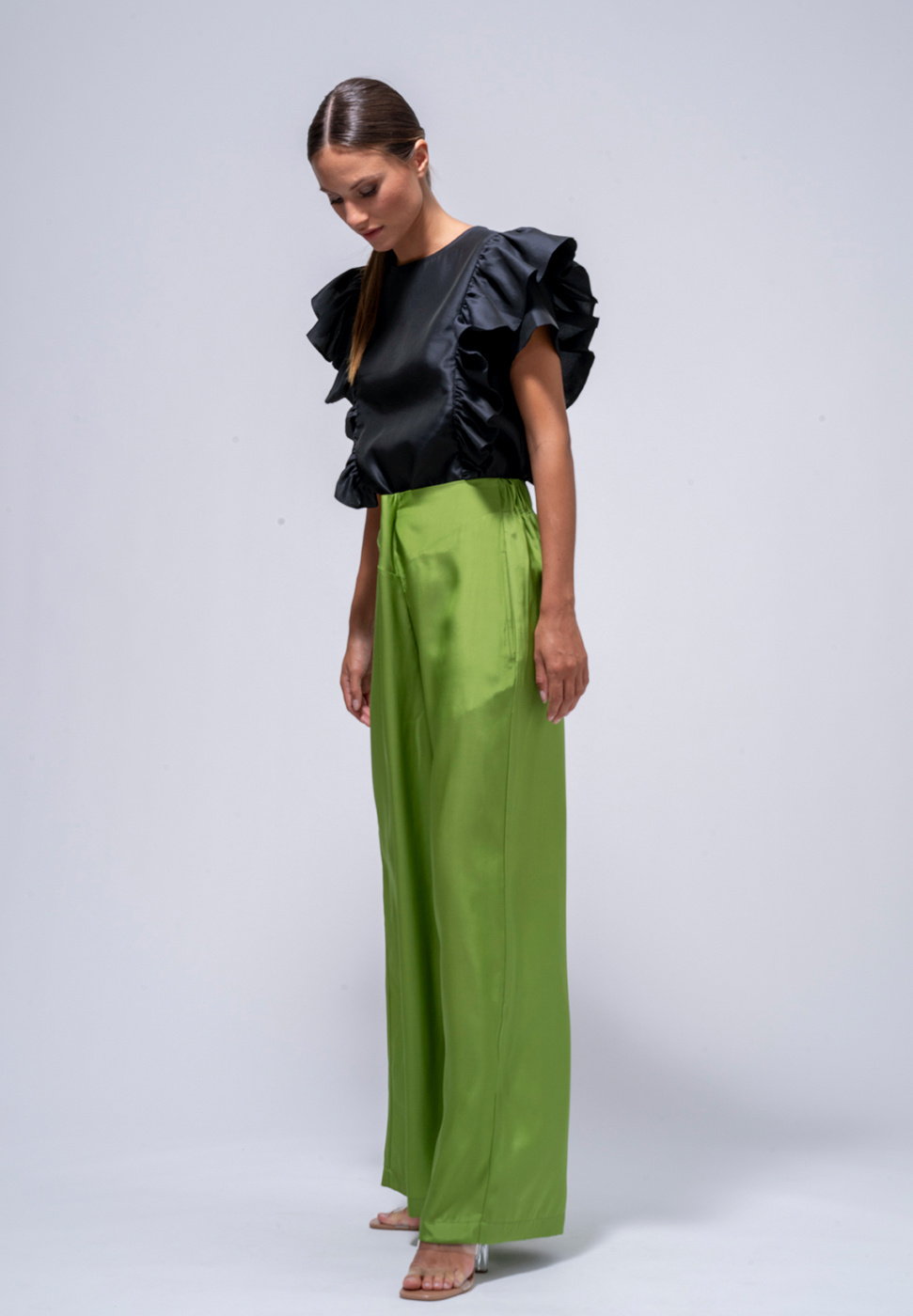 Ruffle top - zwart